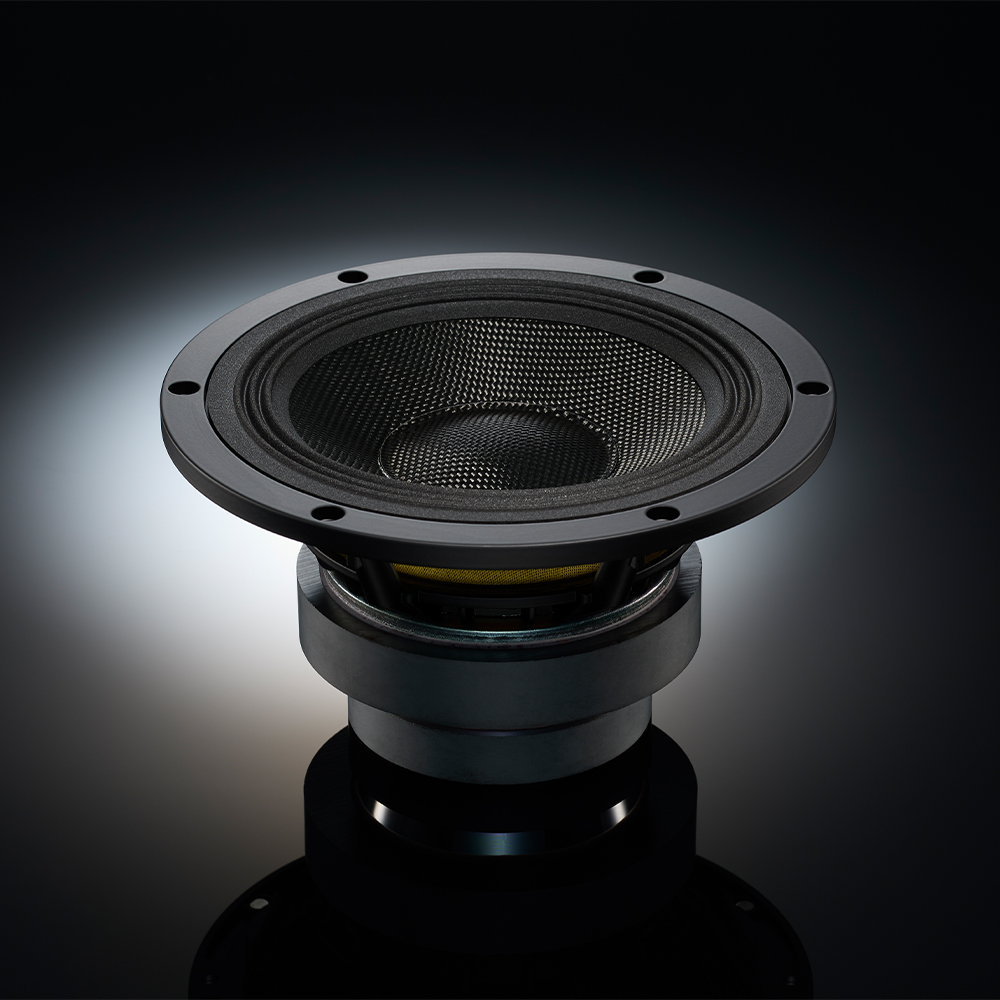The 16cm woofer employs a Multi-layered Aramid Composite Cone (MACC) diaphragm to achieve greater strength, improved internal-loss characteristics, and ideal vibrational behavior. The MACC diaphragm is composed of layers of woven aramid fabric and non- woven fabric of different material formed individually, then laminated to form a single composite cone, and is driven by a Linear Drive Magnetic Circuit (LDMC) with outstanding linearity. All this attention to detail contributes to a rich, distortion-free low-frequency-range sound, as well as a mid-to-low-frequency.